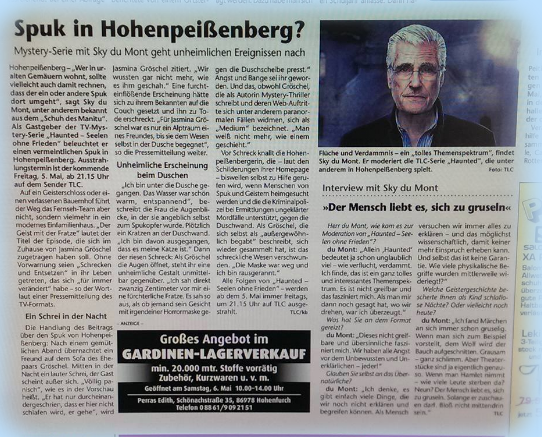 In conjunction with the broadcast on TLC, the Kreisbote published a detailed report about my mediumistic experience. It highlights the collaboration with Sky du Mont's team and the investigation of the paranormal events. This newspaper article serves as proof of my professional expertise and the regional recognition of my mediumistic work.