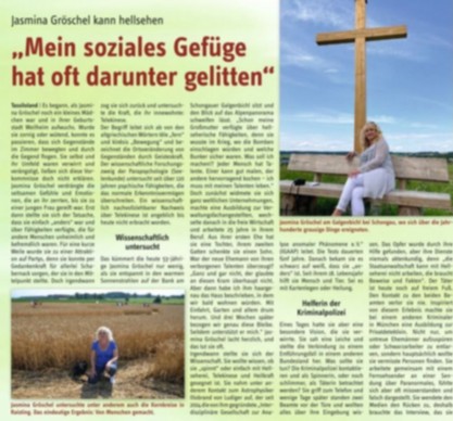 In conjunction with the broadcast on TLC, the Kreisbote published a detailed report about my mediumistic experience. It highlights the collaboration with Sky du Mont's team and the investigation of the paranormal events. This newspaper article serves as proof of my professional expertise and the regional recognition of my mediumistic work.